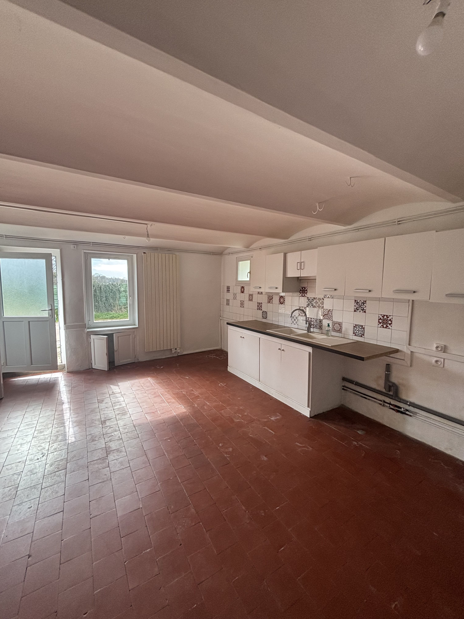 La maison dispose d'une grande cuisine, une pièce à vivre, trois chambres, WC séparés et une salle d'eau.